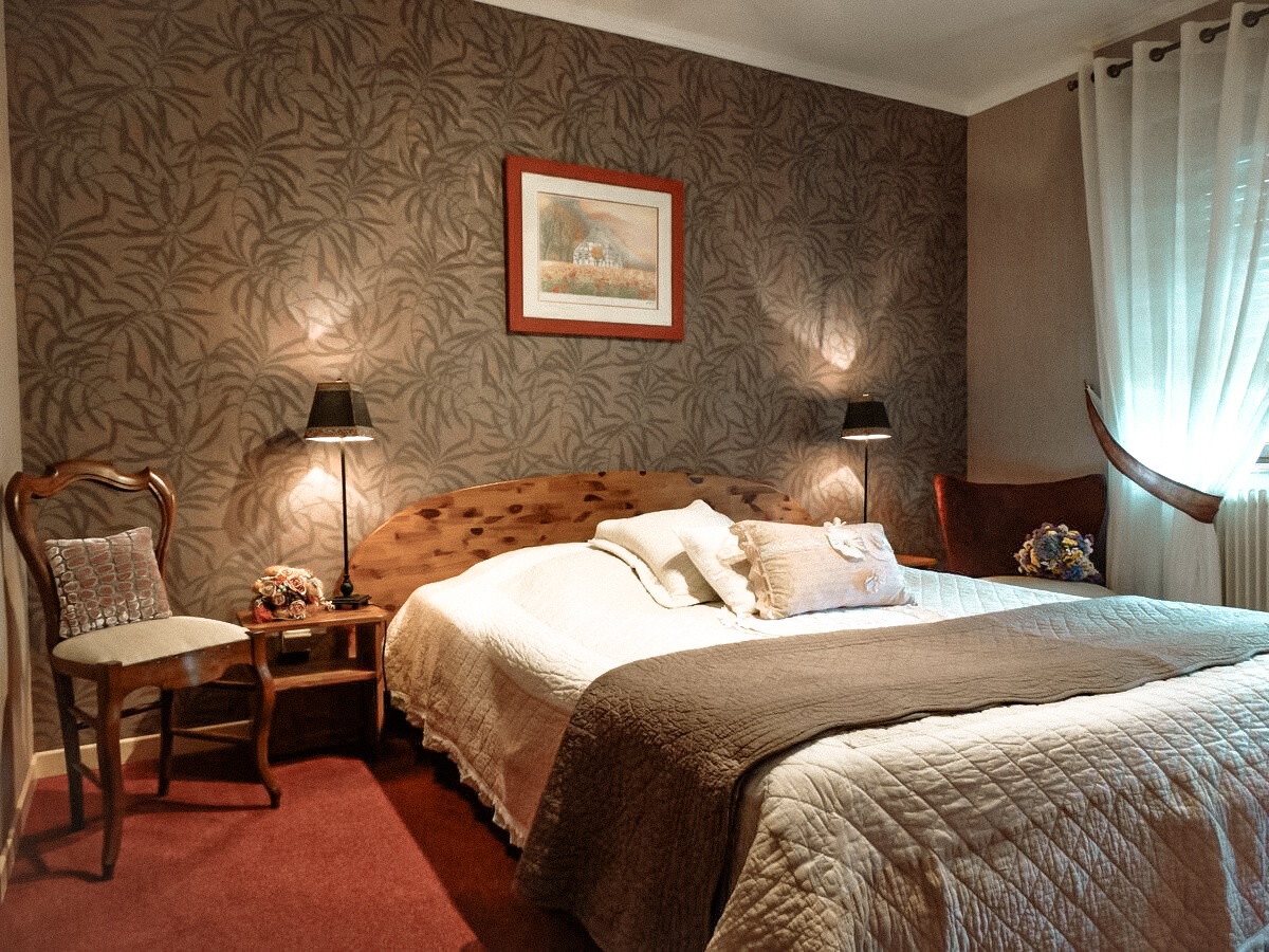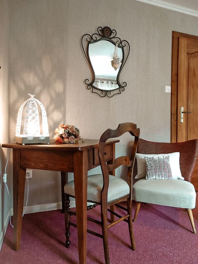 Chaleureuse et apaisante, cette chambre avec vue sur la montagne met à votre disposition un grand lit (160cm x 200cm), une salle de bain avec douche, lavabo et WC.