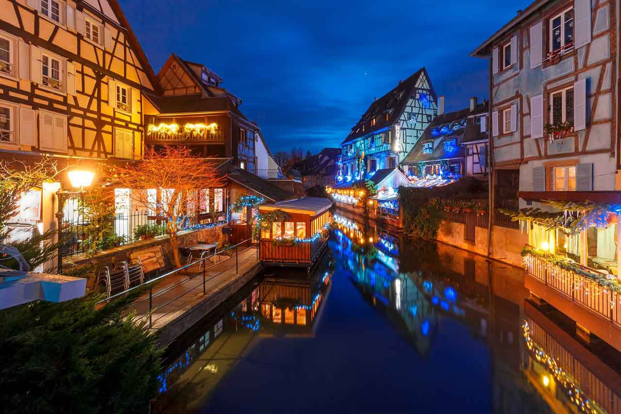 Véritable tradition alsacienne, les marchés de Noël se répartissent dans toute la région au moyen de chalets qui forment de véritables villages féeriques. Vous pourrez y découvrir un artisanat local : décorations de noël, santons, crèches ou cadeaux à mettre sous votre sapin. Le vin chaud aux épices emplit l’air des allées, sans oublier les bredeles croquants (nom des petits gâteaux de Noël typiques de la région – prononcés brèdeuleu!), les bretzels au sucre et les pains d’épices servis par des marchands en costumes d’époque. À la tombée du jour, vous pourrez suivre le veilleur de nuit dans les ruelles du village pour un tour des secrets et légendes entre de magnifiques maisons illuminées.
